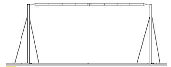 注意:①拉索不能用整条金属绳,这将导致严重的射频损耗!应每隔5米串接一支绝缘子。②在强风地区,天线本身极少被风刮坏,多数损坏都是因架杆倒塌造成,因此架杆必须可靠固定。